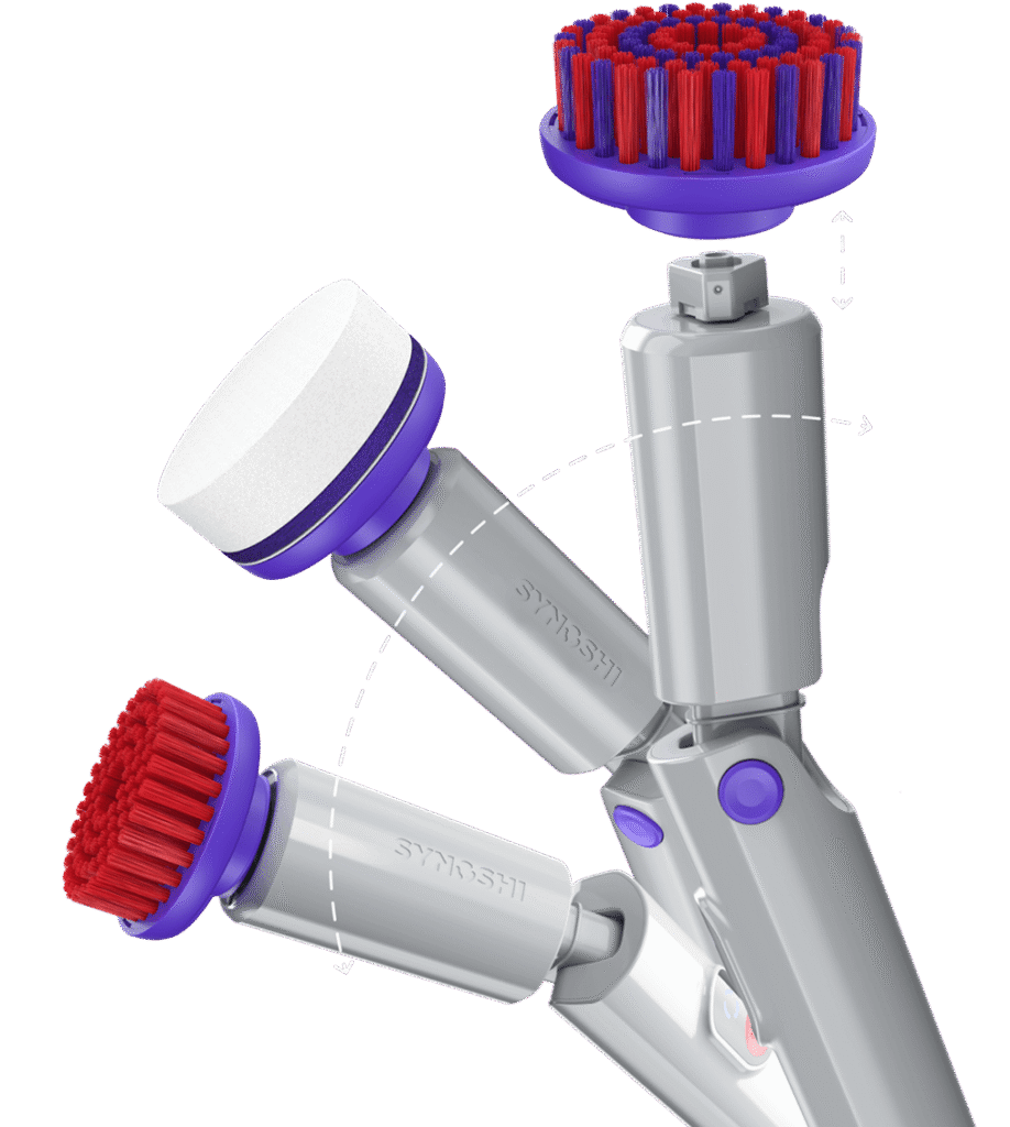 Synoshi is an all-in-one solution! It's perfect for bathroom tiles, shower glass, kitchen counters, grout, car wheels, and even delicate surfaces like stovetops. It comes with multiple brush heads to handle any mess.